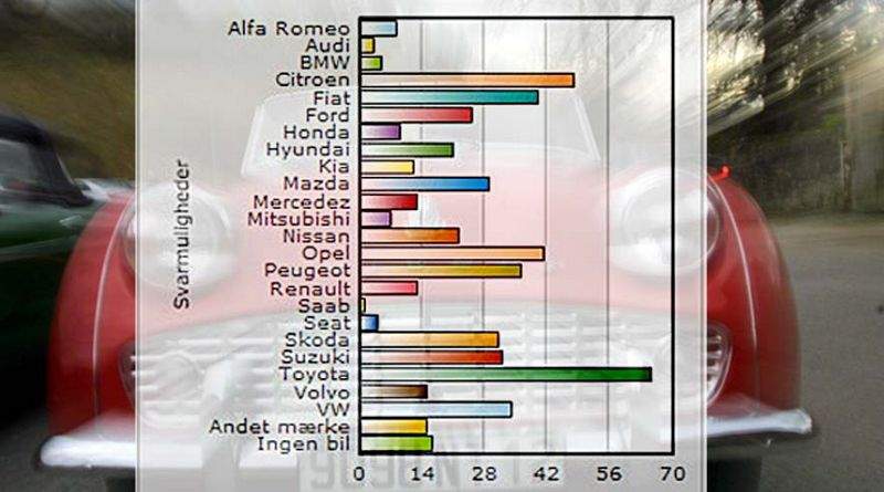 En afstemning på Fagbladet.dk viser, at Toyota med 12 pct. er langt det mest populære bilmærke blandt 3F'ere. Men også Citroën, Opel og Fiat er populære blandt medlemmerne.
