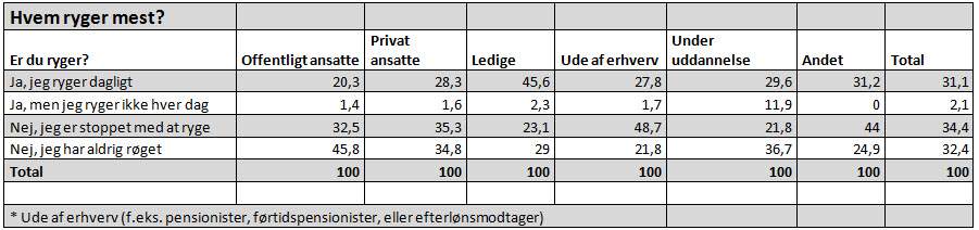 Blandt pensionister, efterlønnerne og førtidspensionisterne svarer 27,1 procent, at de dagligt ryger. I gennemsnit ryger 31,1 procent af alle 3F'ere dagligt.