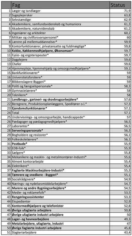 Der er stor forskel på, hvor prestigefyldt det er at være kok eller postbud. Se ranglisten.