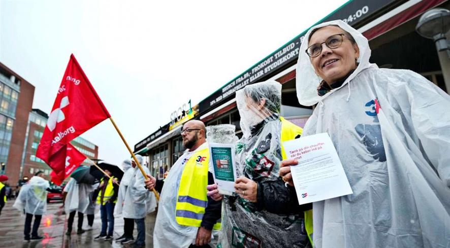Morgenfriske demonstranter samledes tirsdag morgen på Aalborg Busterminal for at vise deres støtte til kampen mod det prekære arbejdsmarked.